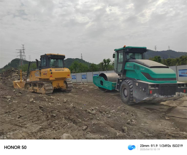 项目施工期间,RE22-X电动压路机主要参与河堤路基的压实施工。施工现场地形稳定,充电设施完善,为电动设备的推广应用创造了理想条件。在实际作业中,RE22-X按“小振—大振—静压”三段压实工艺顺利完成日常任务,其6小时/天的有效工作时长完全满足施工需求,且每日充电频率约为1次,充电时长约90分钟,保障了作业的持续性。